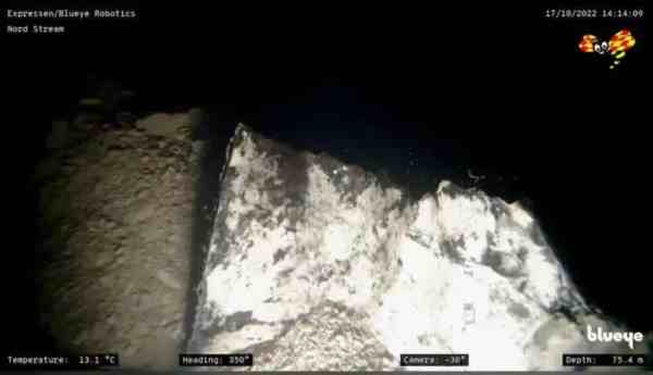 当地时间10月18日,在波罗的海海面以下80米处,《瑞典快报》拍摄到了“北溪-1”天然气管道爆炸位置的画面。