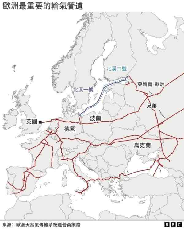 在北溪1号和北溪2号之前,德国等西欧国家从俄罗斯进口天然气,需通过欧陆其他国家,包括白俄罗斯、乌克兰、波兰等。