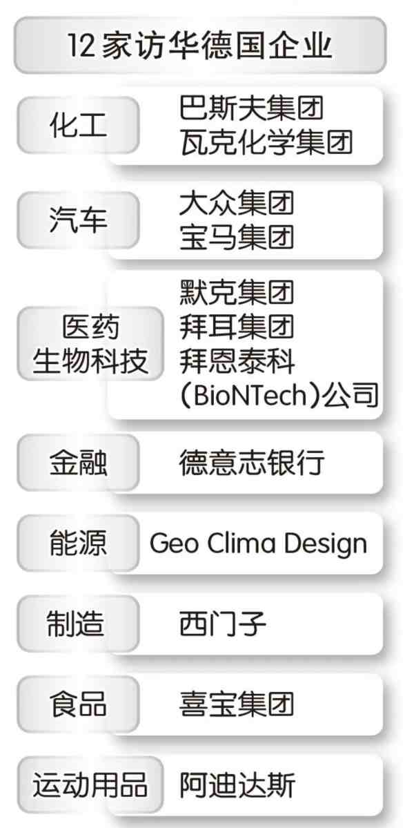 除了巴斯夫,多家德国企业在访华前宣布“加码”投资中国。此次访华团中,来自汽车企业的两位CEO备受关注——大众汽车首席执行官奥利弗·布鲁姆和宝马集团董事长奥利弗·齐普策。大众集团最近宣布,计划投资约24亿欧元,与中国智能芯片公司地平线成立合资企业。宝马也透露,将再投资100亿元人民币扩大在中国的电池项目投入。