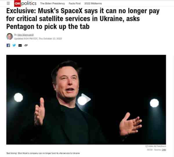 简单的说:“星链”项目如果以后想要在乌克兰继续运行,没问题,美国国防部你们得承担相关费用,你们得“付费订阅”。
