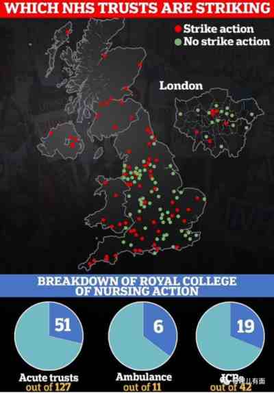 要知道,RCN是英国最大的护士工会,该工会有大约30万名成员,占到了英国护士队伍的三分之二,一旦实施罢工,可能影响到176家医院及医疗机构。