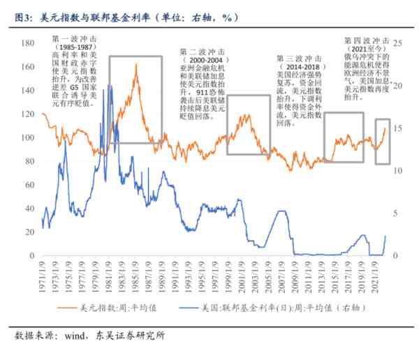 第一波冲击(1985-1987)始于高利率和美国财政赤字使美元指数抬升;