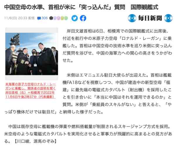 11月6日,日本搞了一次国际观舰式,出现了一个名场面:岸田之问。
