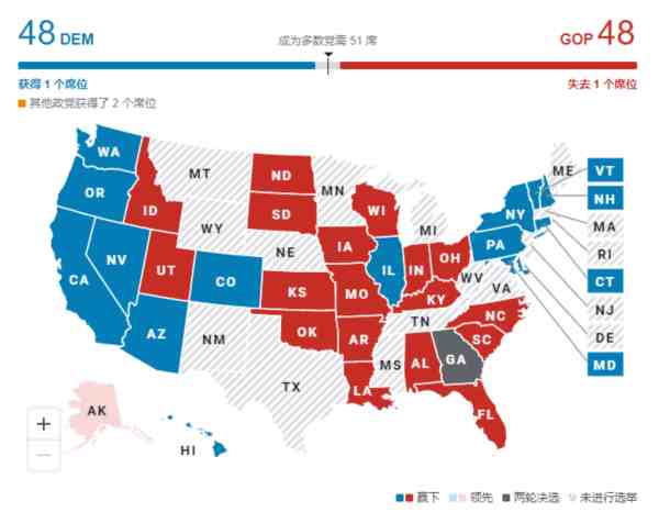 在参议院选举中,民主党甚至反杀一席,提前守住了参议院。如果12月6日佐治亚州联邦参议员决选再被民主党拿下,那么民主党反而会扩大自己在参议院的优势……
