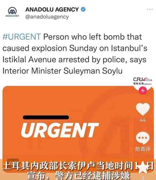 根据今天的最新消息,土耳其内政部长苏莱曼·索伊卢向外界正式宣布:那个留下炸弹的女人已经被抓住了。