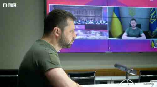 泽连斯基在G20峰会上发表视频讲话。图源:BBC报道截图