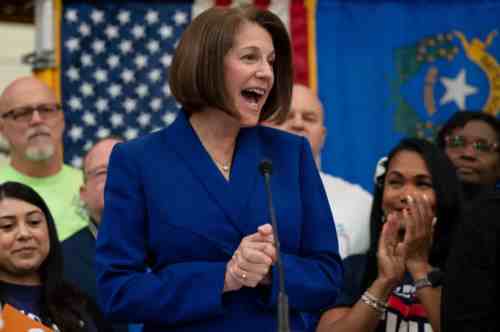 当地时间2022年11月13日,美国拉斯维加斯,卡彭特斯国际培训中心,美国参议员凯瑟琳·科尔特斯·马斯托发表胜利演讲。
