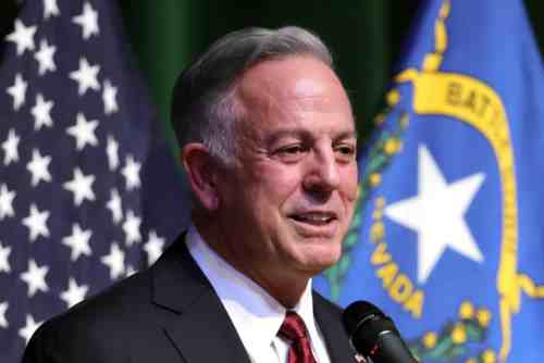 当地时间2022年11月14日,美国内华达州,克拉克县警长、美国内华达州当选州长乔·隆巴多在他的母校Rancho高中发表获胜演讲。