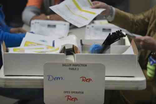 当地时间2022年11月10日,美国拉斯维加斯克拉克县选举部门,选举工作人员正在处理选票。