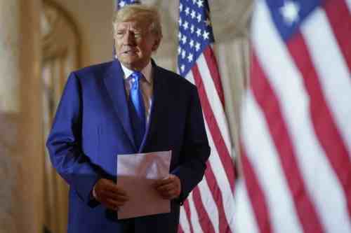 当地时间2022年11月8日,美国佛罗里达州,美国前总统特朗普在选举日抵达棕榈滩的海湖庄园发表演讲。