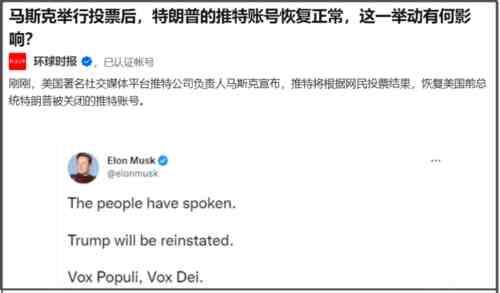 其次,马斯克解封特朗普的时候,还得通过投票这种方式,把自己的责任甩出去,并引入了神的旨意。