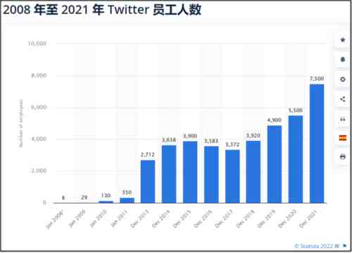 推特本来有7000多名员工,现在被裁得只剩下2000多名,只剩下1/3,已经回到了10年前的水平。