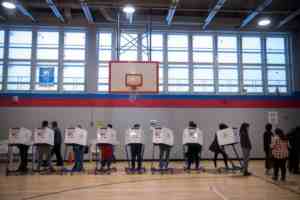 11月8日,选民在美国纽约的一处投票站参加中期选举投票。新华社发(郭克摄)