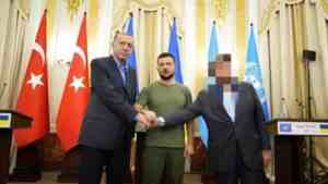 没几天,又拉上土耳其总统一起,举行了一波三方会谈.......