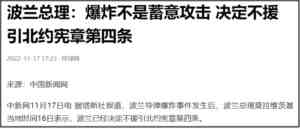 波兰方面最后表示,由于这次导弹爆炸不是对波兰的蓄意攻击。所以波兰没有援引北约宪章第四条。