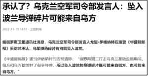 在11月18日,乌克兰空军司令部发言人承认,乌军弹药碎片有可能坠入波兰。
