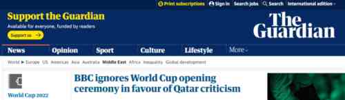 英国《卫报》:BBC忽略世界杯开幕式,支持对卡塔尔批评言论