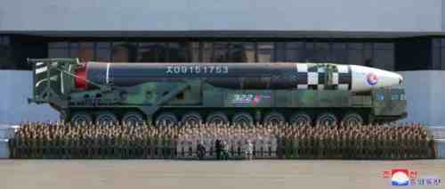 金正恩表示,“火星-17”在全世界面前堂堂地发射,展示了朝鲜在遵循劳动党的国防建设路线宏伟目标、非凡精神力量和超强科技力量的巨大结晶,向全世界大力显示了朝鲜的核战争遏制力。