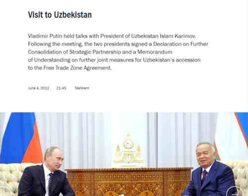 2012年6月4日,重新当选为总统的普京将乌兹别克斯坦作为其中亚出访的第一站,以示自己对俄乌关系的重视。