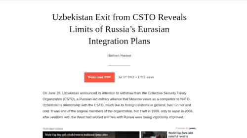 更令乌兹别克斯坦不安的是,如果答应了这项原则,那今后一切都真的得“唯俄罗斯马首是瞻”。卡里莫夫总统遂萌生了彻底退出集安的心思。