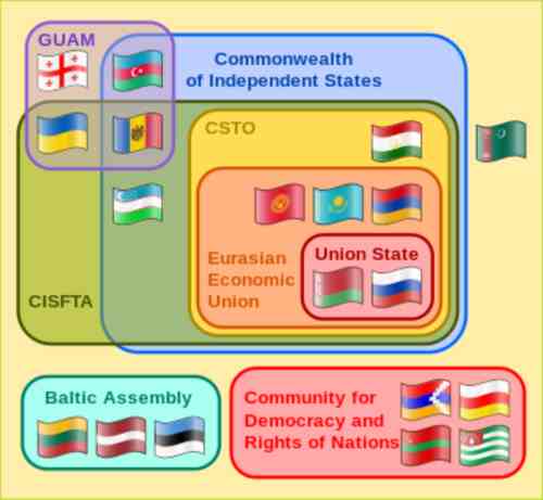 次年,又有3个独联体国家加入,至此,除了宣称“中立”的乌克兰、土库曼斯坦以及和俄有领土纠纷的摩尔多瓦外,《集安条约》囊括了多半独联体国家。