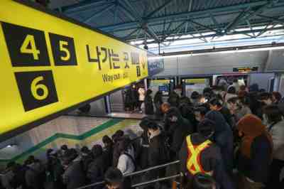 在韩国货运卡车司机罢工的同时,负责承运首尔地铁1至8号线的首尔交通公社工会于11月30日起进行罢工,减少地铁班次。韩国社交平台上有网民当天发文称“这哪是地铁,简直地狱嘛,救命啊”“挤满了人,连交通卡都刷不了”。