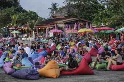 当地时间2022年3月12日,印度西尼亚巴厘岛,海滩上游客扎堆。视觉中国 图