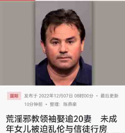 一个美国邪教教主,娶了至少20名妻子,其中多数是未成年人,而且还多是不满15岁,有些甚至才是9岁的幼女,甚至包括他自己的独生女儿。
