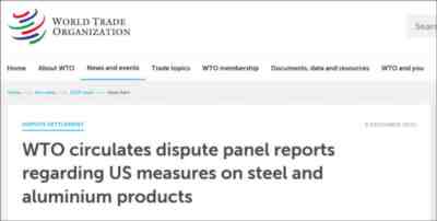 昨天,世界贸易组织公布一系列裁决,认定美国在特朗普政府时期,从2018年开始施加的金属关税政策【违反诸多贸易制度】,希望美方改进自己的行动以符合世贸规则。