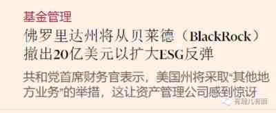 在10月、11月份,多个(据称24个)共和党主政的红州,从黑石旗下基金中撤资。