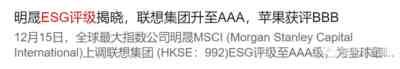 你看,某想得意扬扬自己被摩根旗下评估机构评价AAA;而苹果只有BBB,比某想低了差不多2个等级。那么全世界公众和投行,会真认为某想比苹果更有持续发展能力,更有投资价值吗?