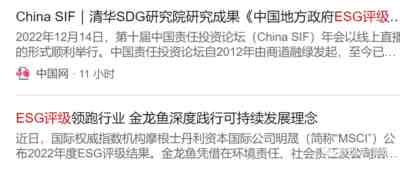 看上去是不是特别高大上?可持续发展、环保、低碳,这简直就是全球的政治正确啊。搜索ESG的时候,结果显示近期一大串中国企业ESG评级,以喜报的形式大报特报相关信息。