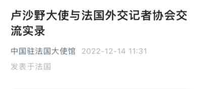 根据交流实录,卢沙野大使在交流中指出有下面几点: