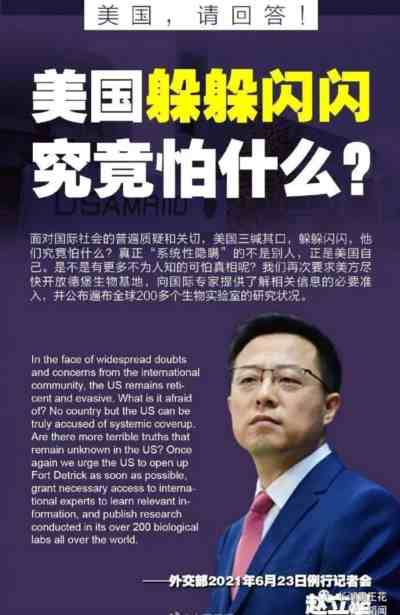 赵立坚曾直接指出:美国一直污蔑武汉病毒研究所开展的冠状病毒研究引发新冠肺炎,但实际上美国才是全球此类研究最大的资助者和实施者。特别是北卡大学巴里克团队是此类研究的权威,早就具备极其成熟的冠状病毒合成及改造能力,只要调查巴里克团队及其实验室,完全可以澄清对冠状病毒的研究有没有会不会产生新冠病毒。