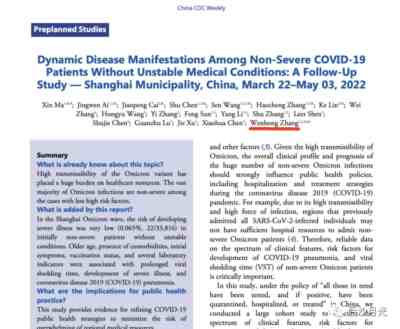 原文于2022年6月发表在学术刊物《中国CDC周报》,作者张文宏,中国标题直译为《不伴不稳定医疗情况的非重症COVID-19患者的动态疾病表现:一项随访研究——中国上海地区》。