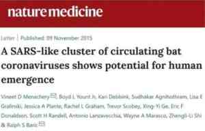 2015年11月9日,拉尔夫·巴里克在《自然·医学》上发表了论文:《一个类似SARS的蝙蝠冠状病毒群显示感染人类的可能性。》