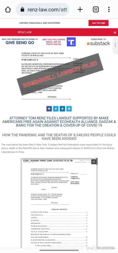 美国律师团就新冠大流行向EcoHealth组织和Ralph Baric等人发起10亿美金索赔: