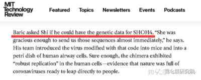 【MIT Technology Review提到Baric曾向石(Shi)要过蝙蝠冠状病毒的基因数据】