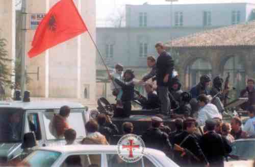 但这些高喊民主自由的大佬们似乎对于民主并不是很虔诚,他们不但在选举中舞弊,还在绝食抗议爆发之后拒绝回应。而面对愤怒的反对派与老百姓,这些民主主义者的第一个反应居然是打开武器库,装备自己这边儿的民兵……阿尔巴尼亚内战爆发了。