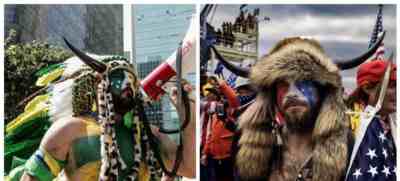 甚至于博索纳罗的支持者的牛头人造型,都和特朗普的支持者一模一样。