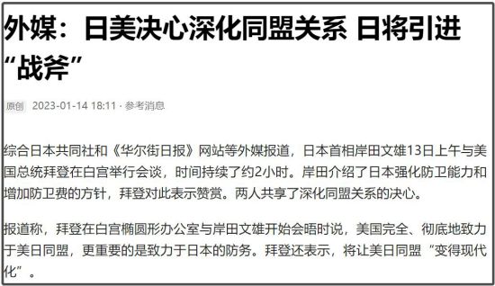日本共同社报道称,岸田还表示“日美两国处于前所未有的严峻且复杂的安保环境之中”,展示出岸田政府强烈的危机感。