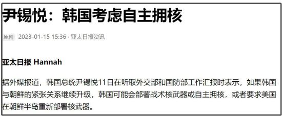 韩国尹锡悦最近甚至表示,韩国可能会部署战术核武器或自主拥核,或者要求美国在朝鲜半岛重新部署核武器。