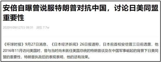 2016年11月,在特朗普刚当选后,安倍就第一时间访美,并说服特朗普对抗中国,讨论日美同盟重要性。