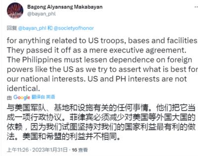 不久前,美菲进行了战略对话,联合声明中提到“苏比克湾是基础建设合作优先地点”,菲律宾国内就有一些人感到担忧,害怕菲律宾会成为第三次世界大战的前线。
