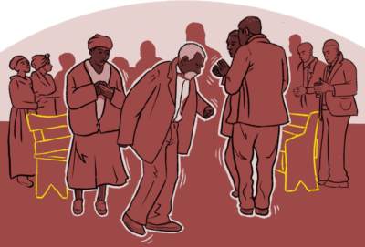 参考照片:约于1930年代,在佐治亚州跳绕圈呼喊舞,摄影师不详。图片来源:史密斯学会安纳科斯蒂亚社区博物馆洛伦佐·道·特纳档案