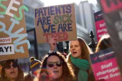 英国国民保健署的工作人员是罢工的主力,从去年12月开始,他们走上街头要求提高薪酬。2月6日,数万名护士和救护车服务人员手举“病人在受罪、我们很疲惫”“员工短缺会付出生命的代价”等标语举行罢工,且规模是国民保健署75年历史上最大的,同时也让英国医疗体系的运作承受更大压力。