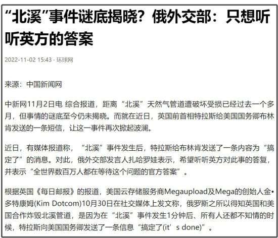 这个是美国云存储服务商的创始人,在10月30日在社交平台上发帖称,在北溪爆炸发生1分钟后,特拉斯就给布林肯发送了一条消息“搞定了”。