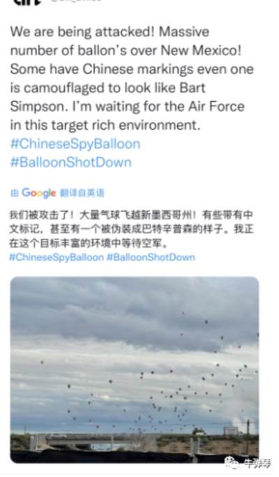 有人则表示:我们被攻击了,因为大量气球正在穿越新墨西哥州,有些上面还带有中文标记,目标很丰富,美国空军你快来……