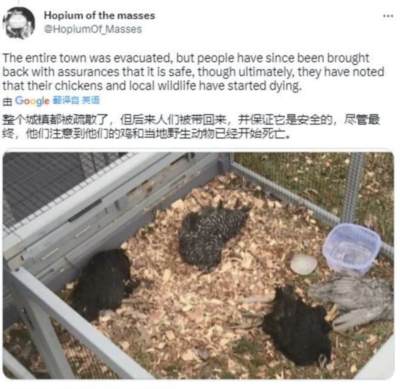 事发地附近一百公里内,大量的鱼、青蛙、乌龟、鸡、狗和狐狸等野生动物死亡。