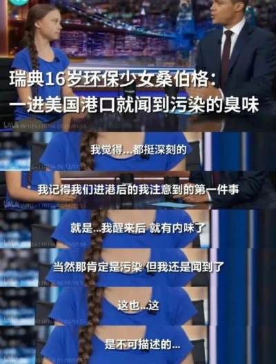 美国其它地方的空气,如果按欧洲“环保公主”的说法,那是进入美国后“第一件事就是闻到了空气污染,那是不可描述的......”